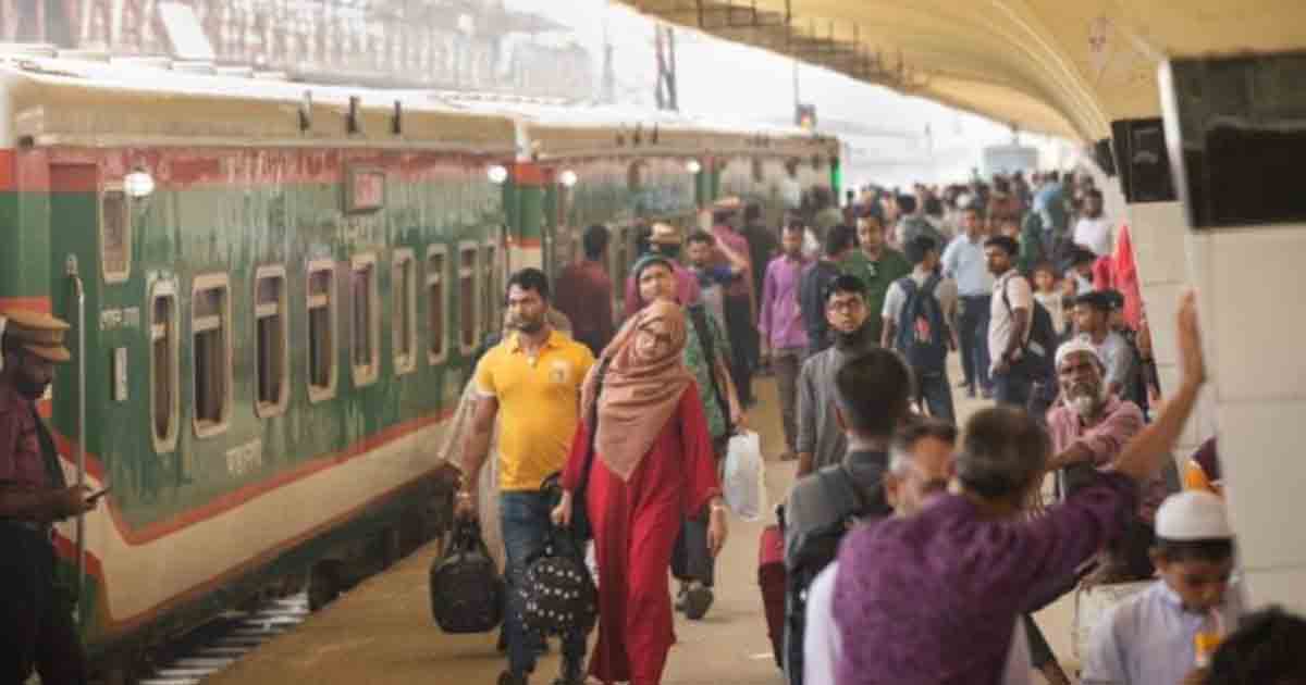 ঢাকা থেকে চট্টগ্রাম ও সিলেটগামী ট্রেনগুলোতে অতিরিক্ত যাত্রীর চাপ বেশি দেখা গেছে। রেলওয়ে সূত্র জানায়, নির্ধারিত সময়সূচি অনুযায়ী ট্রেন চলাচল স্বাভাবিক থাকলেও যাত্রীর সংখ্যা ধারণক্ষমতার তুলনায় অনেক বেশি। সকালবেলায় ছেড়ে যাওয়া চট্টগ্রামগামী মহানগর এক্সপ্রেস ট্রেনটিতে আসনসংখ্যার প্রায় দ্বিগুণ যাত্রী বহন করতে দেখা যায়। ট্রেনের ভেতরে তো বটেই, দরজার সামনে, সংযোগস্থল এমনকি ছাদেও যাত্রী উঠতে দেখা গেছে।