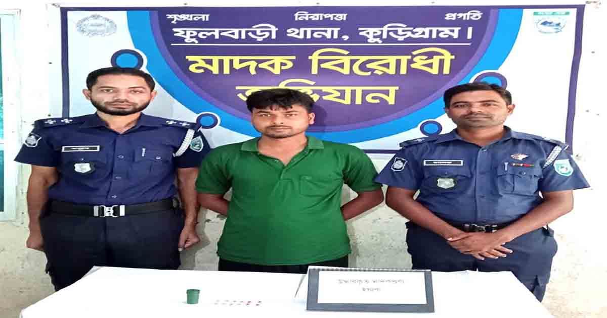 কুড়িগ্রাম জেলার ফুলবাড়ী উপজেলায় মাদকবিরোধী অভিযান চালিয়ে ১৬ পিস ইয়াবা ট্যাবলেটসহ এক যুবককে আটক করেছে ফুলবাড়ী থানা পুলিশ। রোববার (১২ অক্টোবর) দুপুরে উপজেলার দক্ষিণ বড়ভিটা (জেলেপাড়া) জামে মসজিদের সামন থেকে তাকে আটক করা হয়।