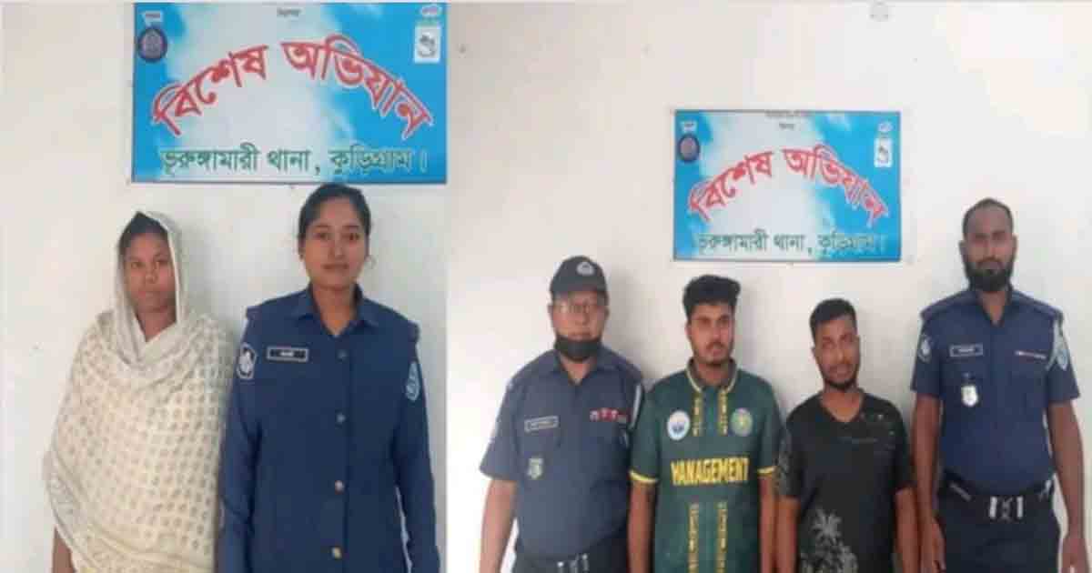 গ্রেফতারকৃতরা হলেন— কুড়িগ্রাম জেলার নাগেশ্বরী উপজেলার বামনডাঙ্গা (তেইলানীর পাড়) গ্রামের মোঃ আনছার আলীর মেয়ে মোছাঃ আসমাউল হুসনা (২৩), একই উপজেলার মোঃ সিরাজুল ইসলামের ছেলে মোঃ নাইম ইসলাম (২৩), এবং ভিতরবন্দ ইউনিয়নের বড়ভিটা গ্রামের শাহিদুল ইসলামের ছেলে মোঃ রাহিমুল ইসলাম নিরব (১৯)।