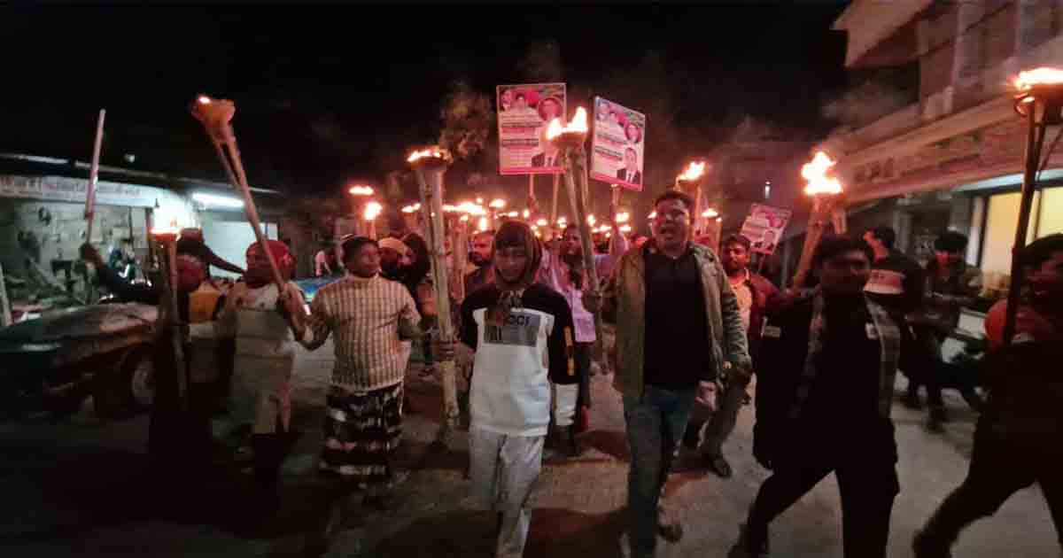 চাঁপাইনবাবগঞ্জ-০২ আসনে ২০১৮ সালে সংসদে যাওয়া বিএনপি প্রার্থীর মনোনয়ন বাতিলের দাবিতে মশাল মিছিল