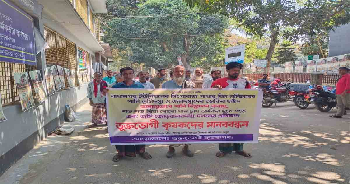 সোমবার বেলা ১১টার দিকে গোমস্তাপুর উপজেলা পরিষদে এই মানববন্ধন করেন ললিহা বিলের কৃষকরা। এসময় তারা বলেন, বিলের ইজারাদার সবগুলো পানি জোরপূর্বক ছেড়ে দেয়ায় বিলের আশেপাশে থাকা এসব জমির ধান পানিশূন্য হয়ে পড়েছে৷ বিল ছাড়া পানির অন্য কোন উৎস না থাকায় এখন চরম অনিশ্চয়তা ও বেকায়দায় পড়েছেন ৬০০ বিঘা জমির কৃষকরা। যুগ যুগ ধরে চলা নিয়ম ভেঙ্গে ইজারাদারের স্বেচ্ছাচারীতায় এমন সংকটে পড়েছেন কৃষকরা। ধারদেনা করে লাগানো ধান চাষাবাদ করতে না পারলে পথে বসবে কয়েকশ কৃষক।
