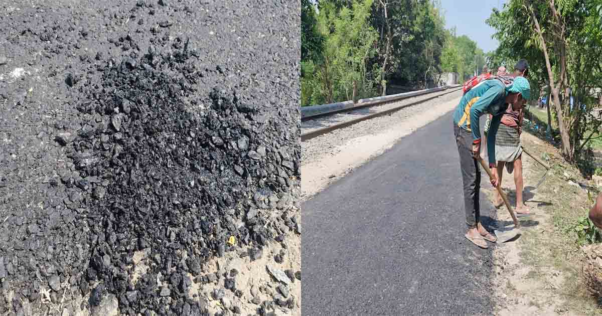 অন্যদিকে, মহাডাঙ্গা থেকে আলীনগর রেলগেইটের একাধিক অংশে কাজ শেষের দুদিন পরেও হাতের টানেই পিচ কার্পেটিং উঠতে দেখা যায়। শনিবার (০৪ এপ্রিল) সকালে হাজির মোড় ও মহাডাঙ্গা রেল লাইন সংলগ্ন এলাকায় হাত ও পায়ের চাপে সড়কের পিচ কার্পেটিং উঠায় স্থানীয় তরুণ-যুবকরা।