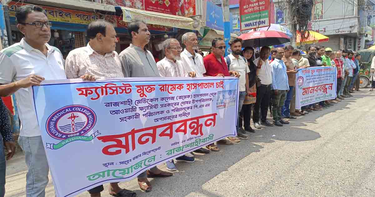 মানববন্ধনে বক্তারা অভিযোগ করেন, রামেক হাসপাতালে একটি প্রভাবশালী চক্র দীর্ঘদিন ধরে সাধারণ রোগী ও চাকরিপ্রত্যাশীদের জিম্মি করে রেখেছে। বিশেষ করে হাসপাতালের উপ-পরিচালক ডা. হাছানুল হাবিব, সহকারী পরিচালক (প্রশাসন) ডা. মো. আবু তালেব এবং পরিচালকের পিএ এস.এম রাশিদুল সালেকিন (সুমন)-এর নেতৃত্বে গড়ে ওঠা এই সিন্ডিকেট এখনো সক্রিয়। বক্তারা অবিলম্বে এই ‘ফ্যাসিস্ট দোসর’ ও দুর্নীতিবাজ কর্মকর্তাদের অপসারণের জোর দাবি জানান।